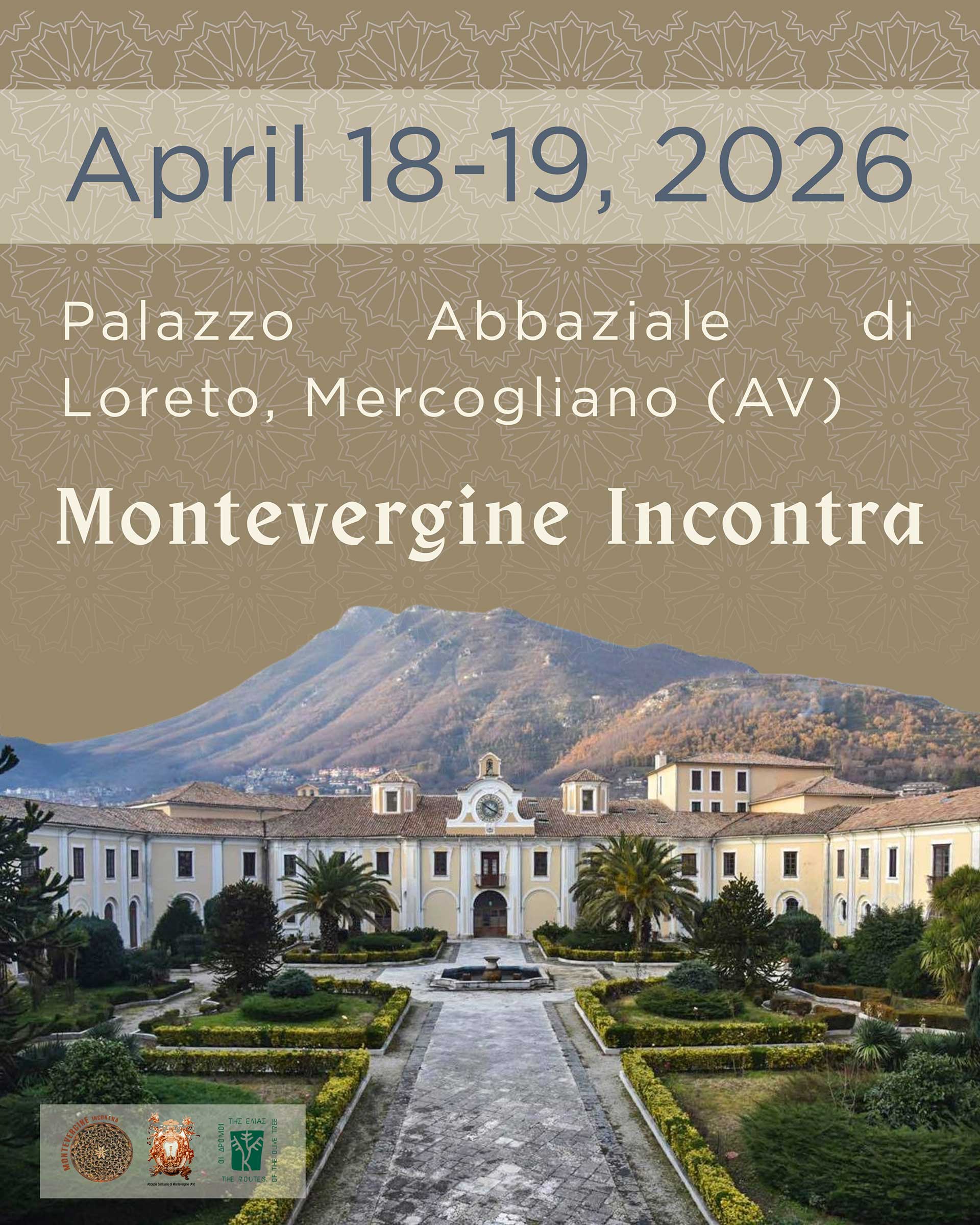 The cultural foundation “Routes of the Olive Tree” is pleased to announce the organization of the event held under its patronage, “Montevergine Incontra. A Tavola con le Religioni: Regole e Valori del Cibo”, which will take place at the Benedictine Abbey of Loreto in Mercogliano on April 18 and 19, 2026.